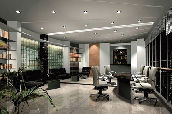 在辦公室室內空間中,燈光的位置可確定它的方向,一般利用頂部下射和側部斜射來沖淡或加重它的方向性,燈光與人或物體距離的變化可創造出不同的光影效果,有助于發揮燈光造型的表現力。當然還要考慮燈光分布和藝術構圖的因素,在辦公室設計時要運用這些因素使其變化來創造要求的環境氣氛,通過地面點綴的燈光對空間進行引導。在辦公室空間中,垂直或水平面上使用聚光燈重點照射可創造出強烈對比,引起人們的注意或興趣,并指出視覺中心。