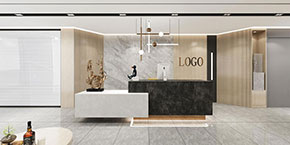 辦公室前臺的不同風格體現出的是公司的規模與服務態度,裝飾優雅、大方的前臺更能體現出公司的核心價值觀。