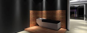 顏色以冷色調(diào)“綠色”為基調(diào),抽象派的風(fēng)格,時代與自然的和諧美處處體現(xiàn)出美發(fā)院業(yè)主別具匠心的用意,吧臺對面的休閑區(qū),墻面以暖色“紅色”為主格調(diào),以烘托主題。整體上烘托出美發(fā)院安靜、幽雅的氣氛。也有另類美發(fā)院加入了四合院、古典、果樹等主題等,給消費者以另類享受。