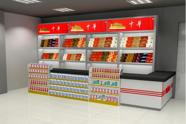 煙酒專賣店以經營煙酒為主,在設計店面時,應主要考慮煙酒商品的布局。經營者最好對煙酒進行分區陳列,因為煙有購買頻率高、購買零散的特點,從取貨容易和防盜兩方面來考慮,煙一般應放置在店鋪里側,并用柜臺將其與外部分開。為了保證有充足的陳列空間,大面積的貨架是必不可少的。一般來說,除了有特殊用途的墻面之外,店內的每面墻都應設置貨架。用于陳列酒水的貨架,要根據材質來確定其長度,太長則承重效果差,存在安全隱患;太短則間隔較多,導致空間浪費。