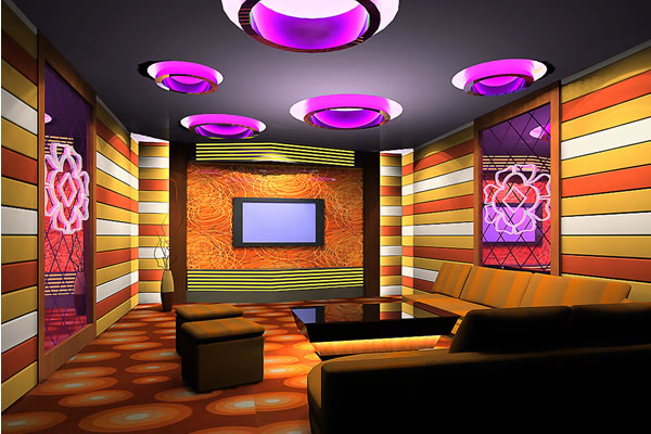 還有,在合肥ktv裝修的時候,色彩的搭配是一個很重要的方面,不同的色彩搭配可以有或溫柔、沉穩(wěn)、嬌艷、神秘、質(zhì)樸、華麗、歡快、憂郁等等不同的效果。我們需要注意的是應(yīng)當(dāng)先選出主色調(diào),然后可以選用具有強烈對比效果的色彩,如亮對暗,暖色調(diào)對冷色調(diào),可以達到生機盎然的效果 。現(xiàn)代的KTV色彩設(shè)計一般比較追求時尚但是懷舊的設(shè)計也是很有市場的。燈光和色彩在ktv裝修之中是很重要的,很好的搭配能夠烘托ktv的氣氛。要明確的是,KTV裝修雖然需要諸多燈光,但是不宜過亮,要以柔和為主,當(dāng)然,特殊需要的地方,諸如收銀臺,可以局部用亮光。
