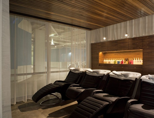 在現代美容院裝修設計中,燈光的極為重要的部分,而美容院燈光大部分是安置于天花上的。因此天花燈光設計已然成為美容院燈光的重要部分。我們通常采用三種燈光形式去實現整體的燈光效果,第一是主光燈,如大廳吊頂、房內吸頂燈;二是射燈,主要用于高光點及明暗對比;三是暗藏燈帶,起到輔助及氛圍的作用。做好這三類燈光的設計,美容院的整體燈光設計便基本上能達到較為滿意的效果。