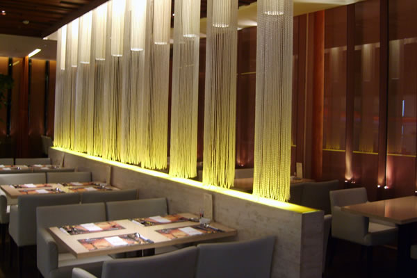 由于餐廳空間有限,所以許多建材與設備,均應作經濟有序的組合,以顯示出形式之美。所謂形式美,就是全體與部分的和諧。簡單的平面配置富于統一的念,但容易因單調而失敗;復雜的平面配置富于變化的趣味,但卻容易松散。配置得當時,添一份則多,減一份嫌少,移去一部分則有失去和諧之感。因此,設計時還是要運用適度的規律把握秩序的精華,這樣才能求取完整而又靈活的平面效果.在設計餐廳空間時,由于備用途所需空間大小各異,其組合運用亦各不相同,必須考慮各種空間的適度性及各空間組織的合理性。
